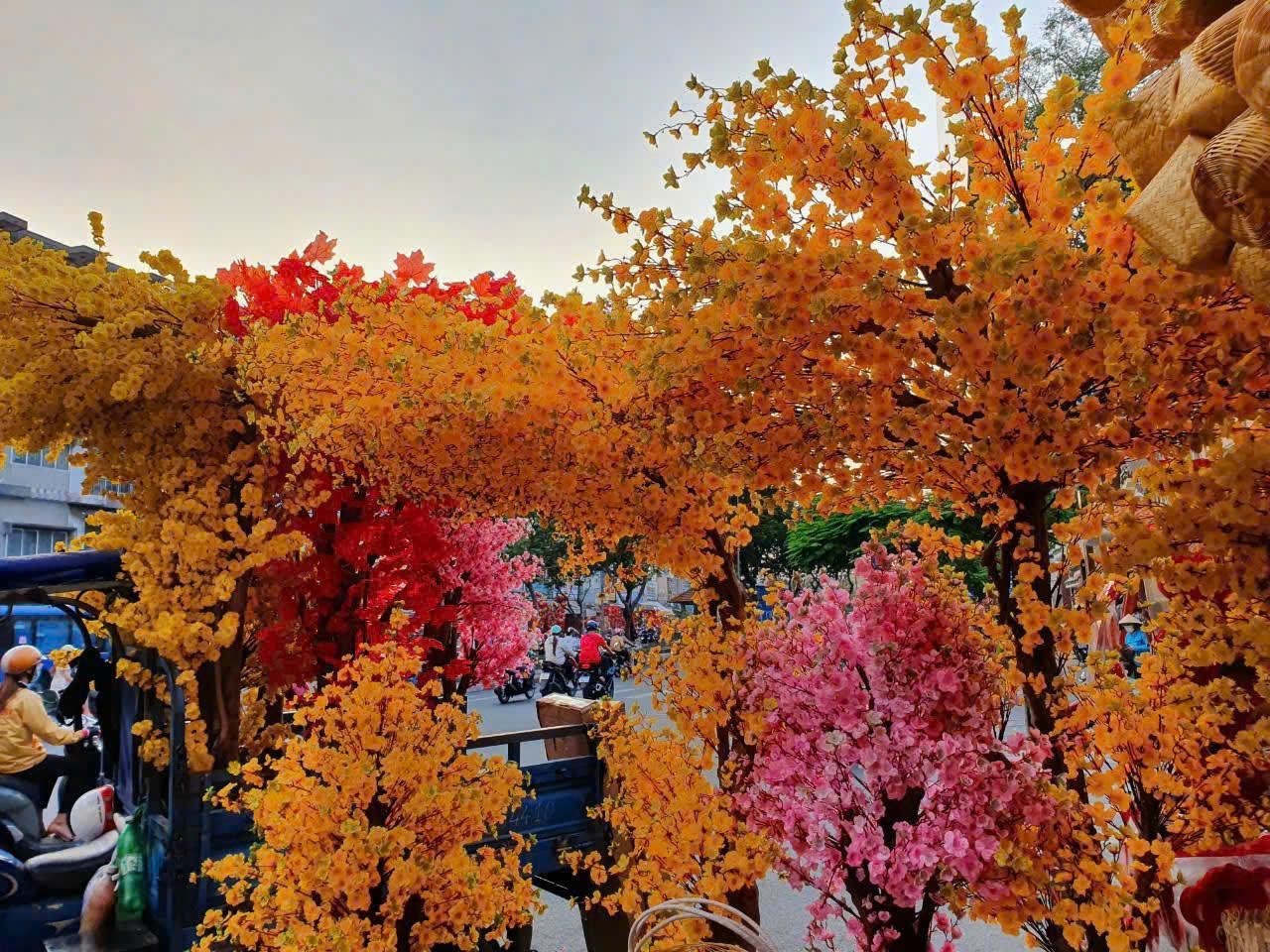 Hoa giả chất lượng cao hiện nay có độ bền tốt, màu sắc đẹp và có thể tái sử dụng nhiều năm. Đặt một chậu mai hoặc đào giả ở cửa ra vào hoặc góc cửa hàng giúp không gian trở nên nổi bật hơn.