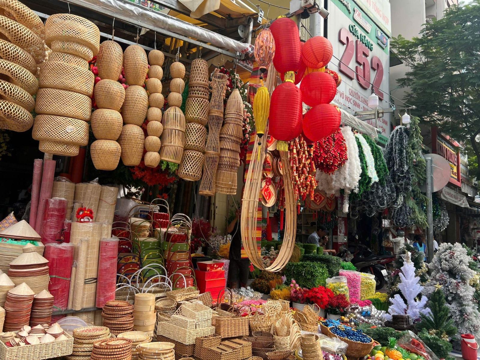 Trong trang trí Tết cho cửa hàng, mặt tiền là yếu tố quyết định khách có dừng lại hay không. Đèn lồng với ánh sáng đỏ – vàng giúp cửa hàng nổi bật hơn giữa khu phố đông đúc, tăng khả năng tiếp cận khách vãng lai.