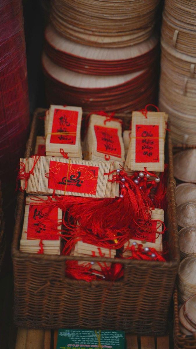 Đèn lồng Tết là phụ kiện gần như “không thể thiếu”. Có thể treo trước cửa, dọc lối đi hoặc khu vực quầy thu ngân. Ngoài ra, các loại dây treo chữ chúc Tết, đồng tiền vàng, pháo đỏ giúp tạo không khí xuân rõ rệt mà không chiếm nhiều diện tích.