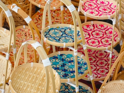 Mẹt tre tầng trang trí Tết